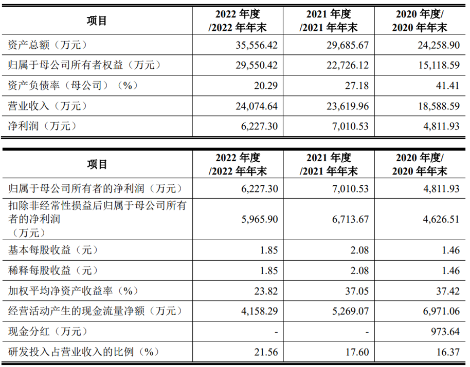 2020年至2022年,浩辰软件的营业收入分别为18,588.59万元、23,619.96万元和24,074.6万元;净利润/归属于母公司所有者的净利润分别为4,811.93万元、7,010.53万元和6,227.30万元;扣除非经常性损益后归属于母公司所有者的净利润分别为4,626.51万元、6,713.67万元和5,965.90万元。