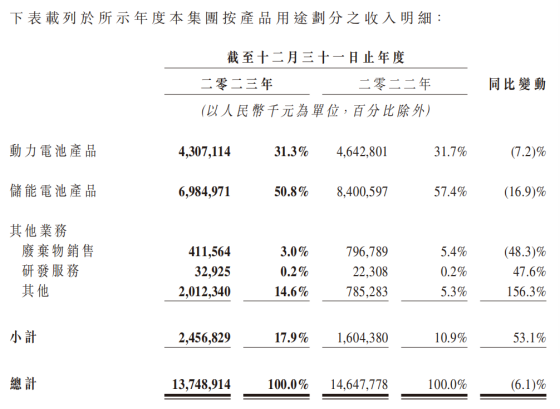 目前,瑞浦兰钧的收入主要来自于销售动力电池产品及储能电池产品。2023年,这两项业务对总收入的贡献超过80%。
