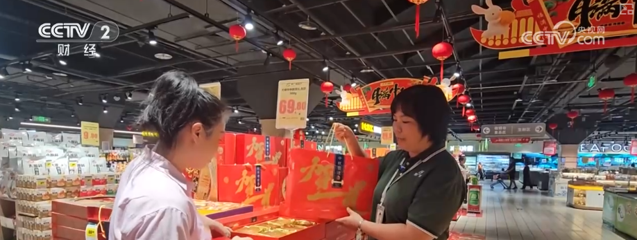 除了月饼礼盒,超市里的散装月饼也卖得很不错。他们还针对部分月饼推出了“散装称重+简易手提袋”组合,既美观又美味,价格还实惠。