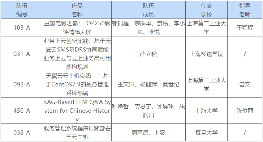 经过线上评选,第二届“天翼云杯”上海市大学生云计算应用大赛赛道决赛名单已产生。现公示如下: