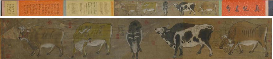 毕生以传承中华优秀传统文化为己任的世界级文物收藏家、蒙元文化博物馆馆长梁亚权,近期又向国内外隆重推出书画文物新藏品,上清宫地宫宝藏封存册三十八卷之第三卷10幅唐宋元时期的7位名画家的传世珍品画作,其中唐代宰相、画家韩滉的《五牛图》是中国现存最早的绢本中国画,被誉为 “镇国之宝”。