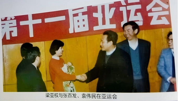 梁亚权与时任北京市常务副市长张百发和著名教练袁伟民在一起