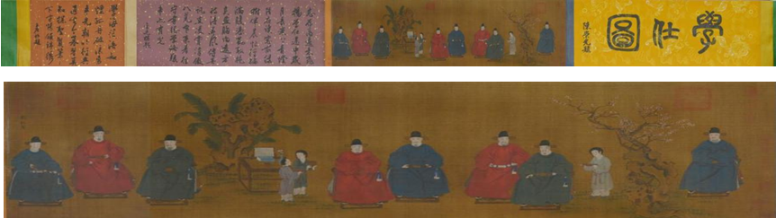 南宋 “南宋四家” 之一刘松年(约 1155—1218,钱塘人,宫廷画家),描绘初唐 “秦府十八学士” 在园林中雅集的盛事,也映射了南宋士大夫的理想生活。是南宋绘画的典范之作。